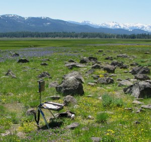 A sheep herd had arrived yesterday and collected along the perimeter of the fields of camus, creating distant bleating . The mountains in background are Mount Rose Wilderness.