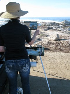 Weather was warm for January in Monterey. I was fortunate to arrive at Point Lobos State Park and get in a small tree study in the last hour of daylight. A excellent poem about early Monterey is in the downtown park. Had fun painting a study of the Pacific Grove Lighthouse, a few cypress trees and my favorite adobe, General Shermans house.