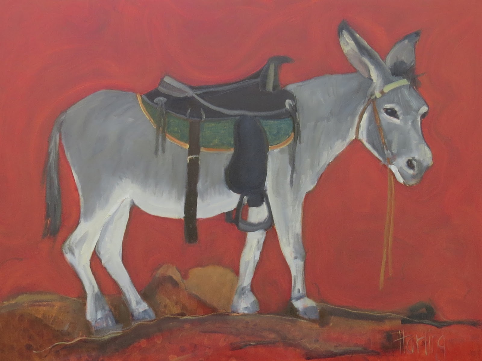 Wish I could take a burro home with me. I painted Pancho with a red background, seemed to go with his name and peppermint candy. I left the saddle on him, because he enjoyed performing..but placed him out there on a rocky terrain.
