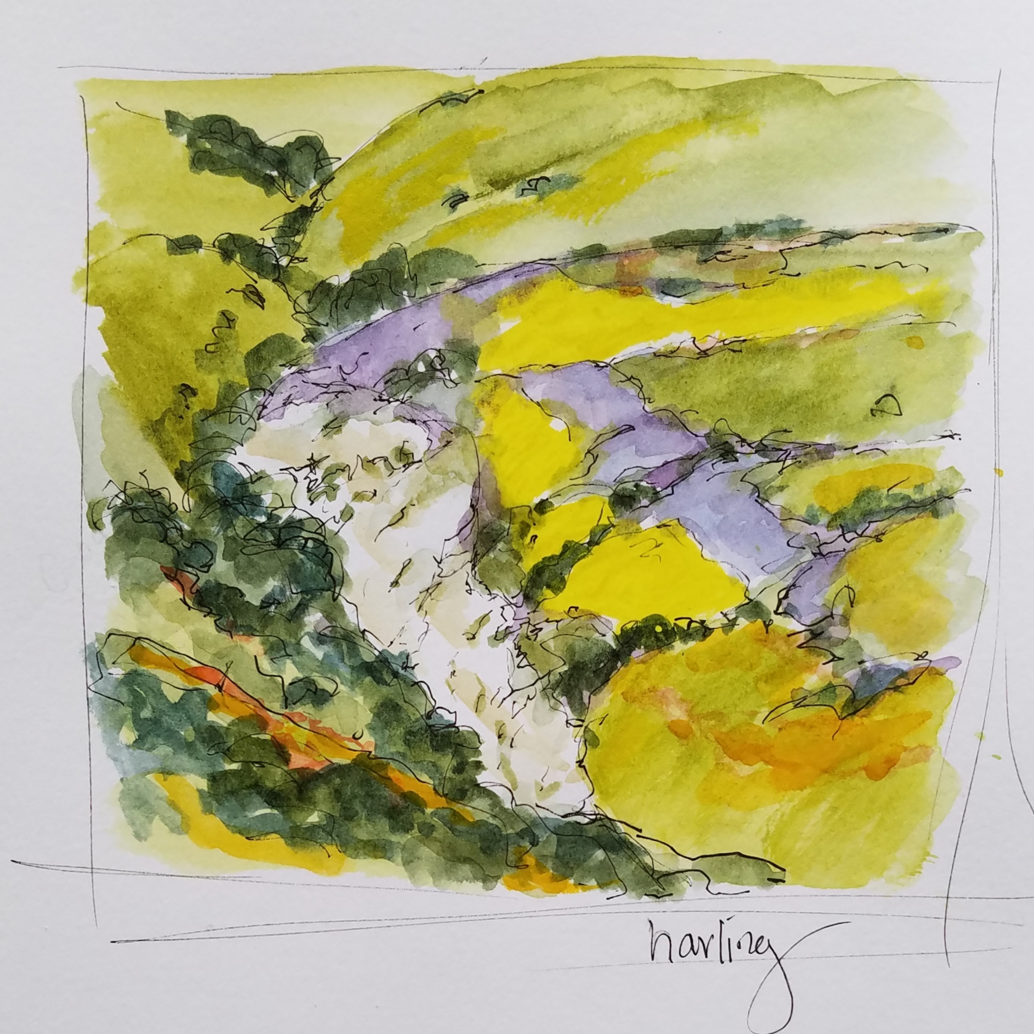 Temblor Range Posted on March 28, 2019 by crystal harling Temblor Range is in the California Coast Ranges that runs the length of Carrizo Plains. Just before you drop into Carrizo from the north you see painted hill sides of color. I did a watercolor sketch on site. Tidy tips on valley floor Phacelia and Tidy Tips Common Goldfields foreground Temblor Range in background Share this: Click to share on X (Opens in new window) X Click to share on Facebook (Opens in new window) Facebook Like Loading... Related