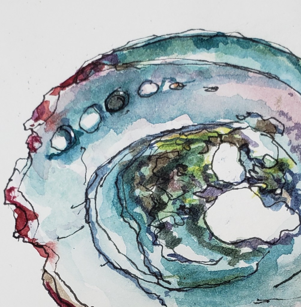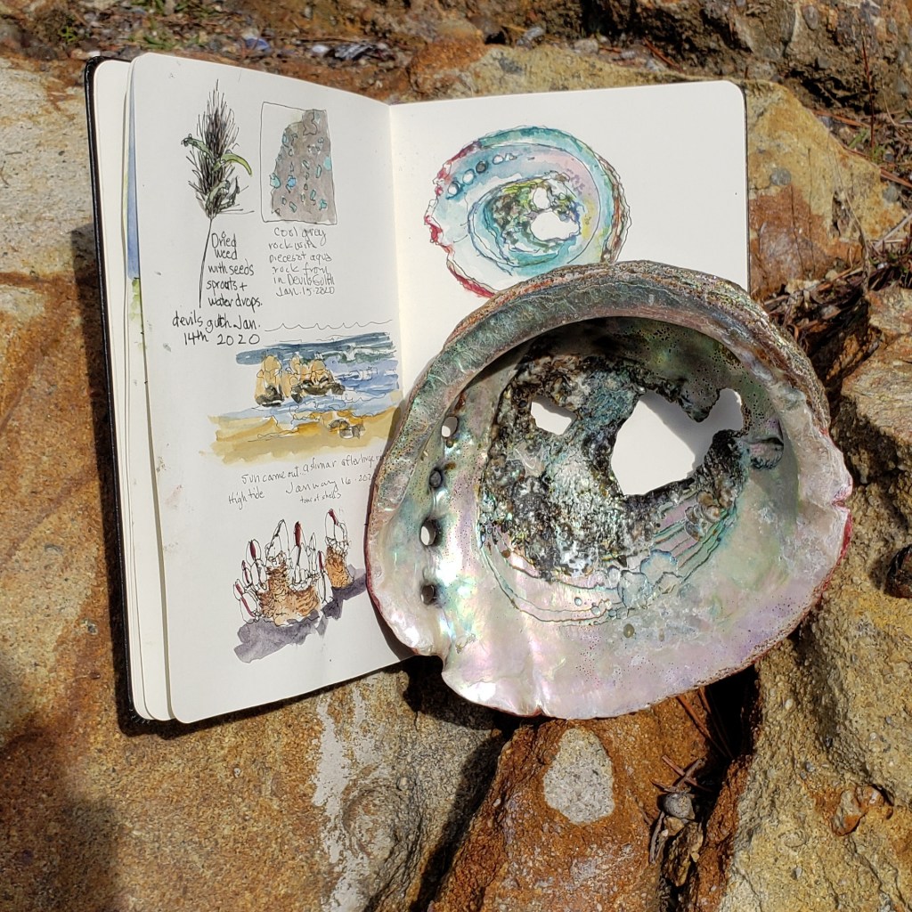 Abalone at Point Lobos Posted on January 24, 2020 by crystal harling Sketched this shell at Hidden beach at Point Lobos Black abalone are blue. The holes allow current water to pass thru the shell. Share this: Click to share on X (Opens in new window) X Click to share on Facebook (Opens in new window) Facebook Like Loading... Related