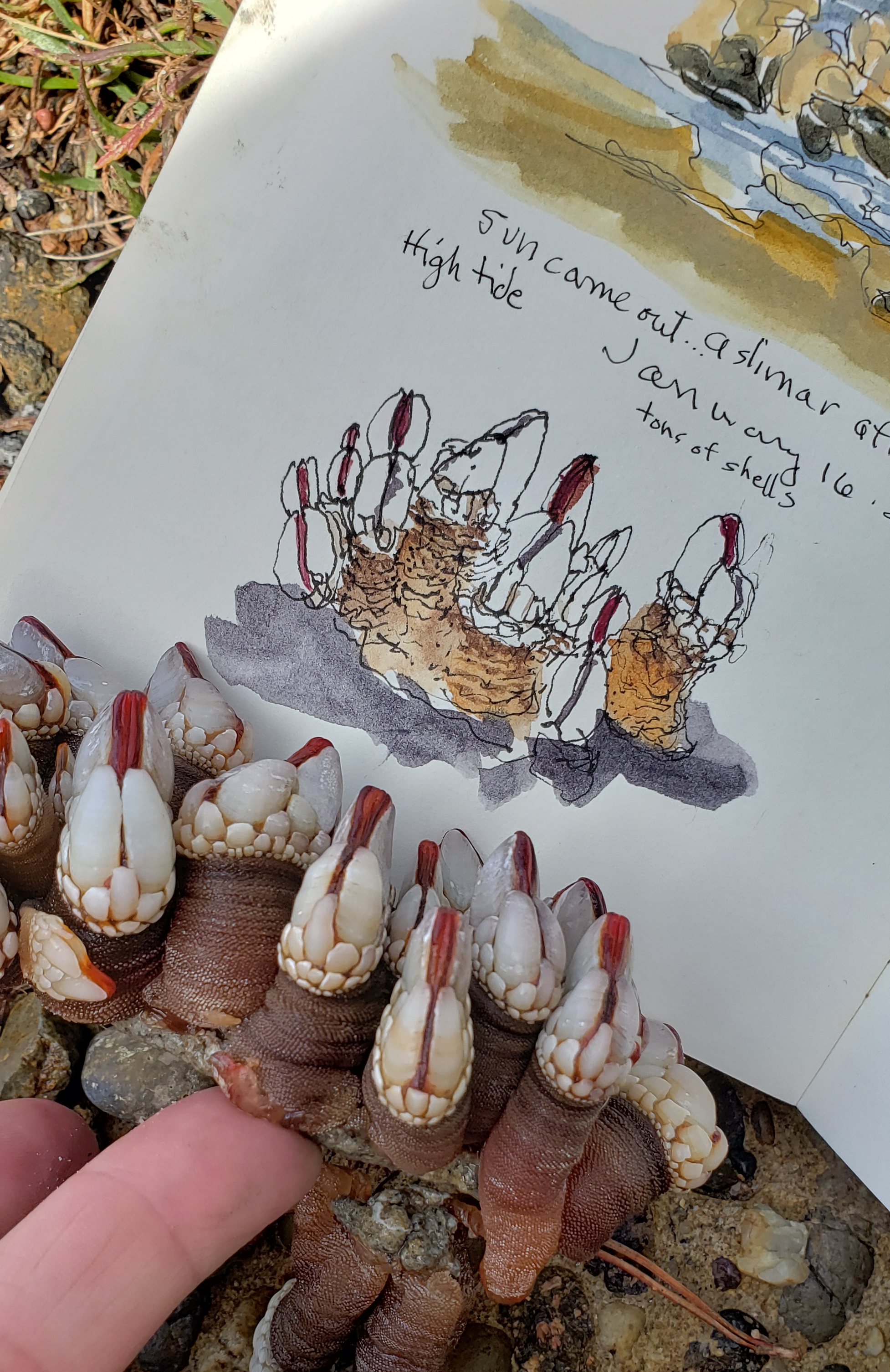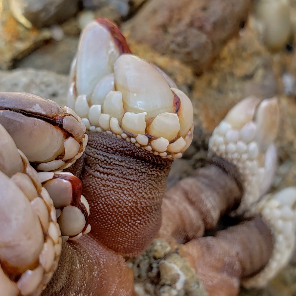 Leaf Barnacles Posted on January 24, 2020 by crystal harling Leaf Barnacles found at Point Lobos state park after a big rain. Barnacles are filter feeders. The dark red is where the cirri comes out The stock is thick and rubbery to help against pounding surf. They resemble beaver or rabbit teeth. Share this: Click to share on X (Opens in new window) X Click to share on Facebook (Opens in new window) Facebook Like Loading... Related