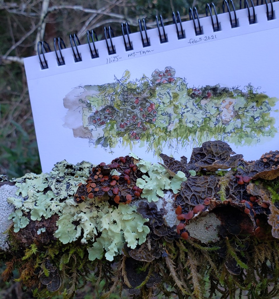 Moss and Lichen Posted on February 25, 2021 by crystal harling Every year after a good rain I like to go back to a group of trees in a creek bed. They produce an abundance of beautiful lichen and lungwort. I stood and sketched this branch in ink before adding watercolor. Share this: Click to share on X (Opens in new window) X Click to share on Facebook (Opens in new window) Facebook Like Loading... Related