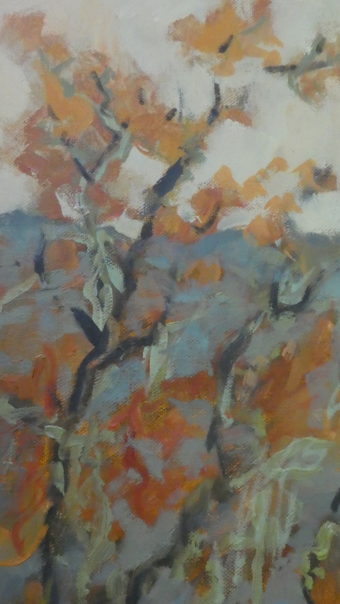 This time of year the bay area oaks are waking up to spring. Some of the deciduous oaks have catkins dangling from the branches. This oak early in the morning glowed with catkins and lace lichen. A group of cows watched from a distance while I took photos of this tree which later turned into a large painting.