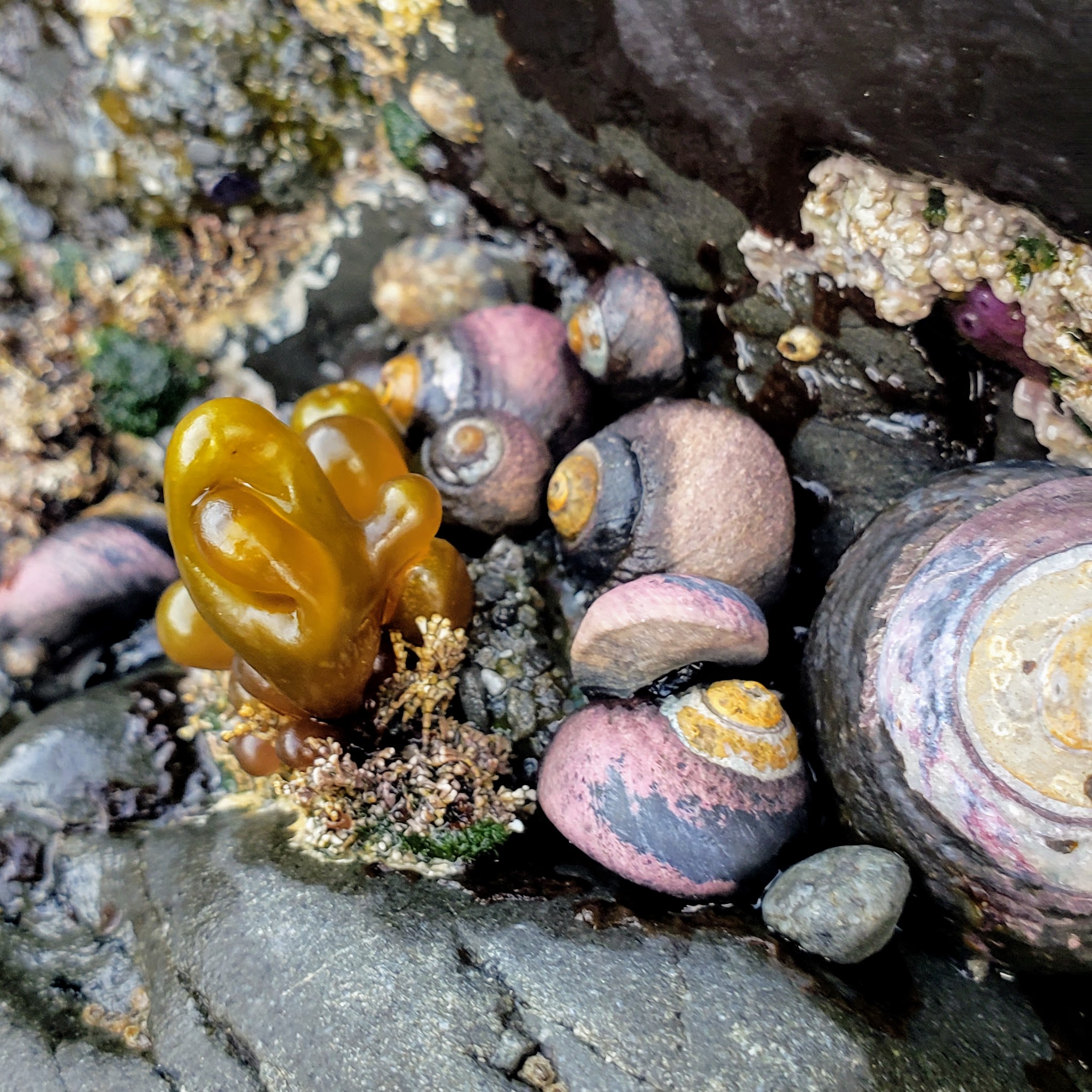 Exploring the coast and tidepools near Fort Bragg California with a 1.7 minus tide. For the first time I saw many large abalone and lots of large sea stars. Seals with newborns and no people.