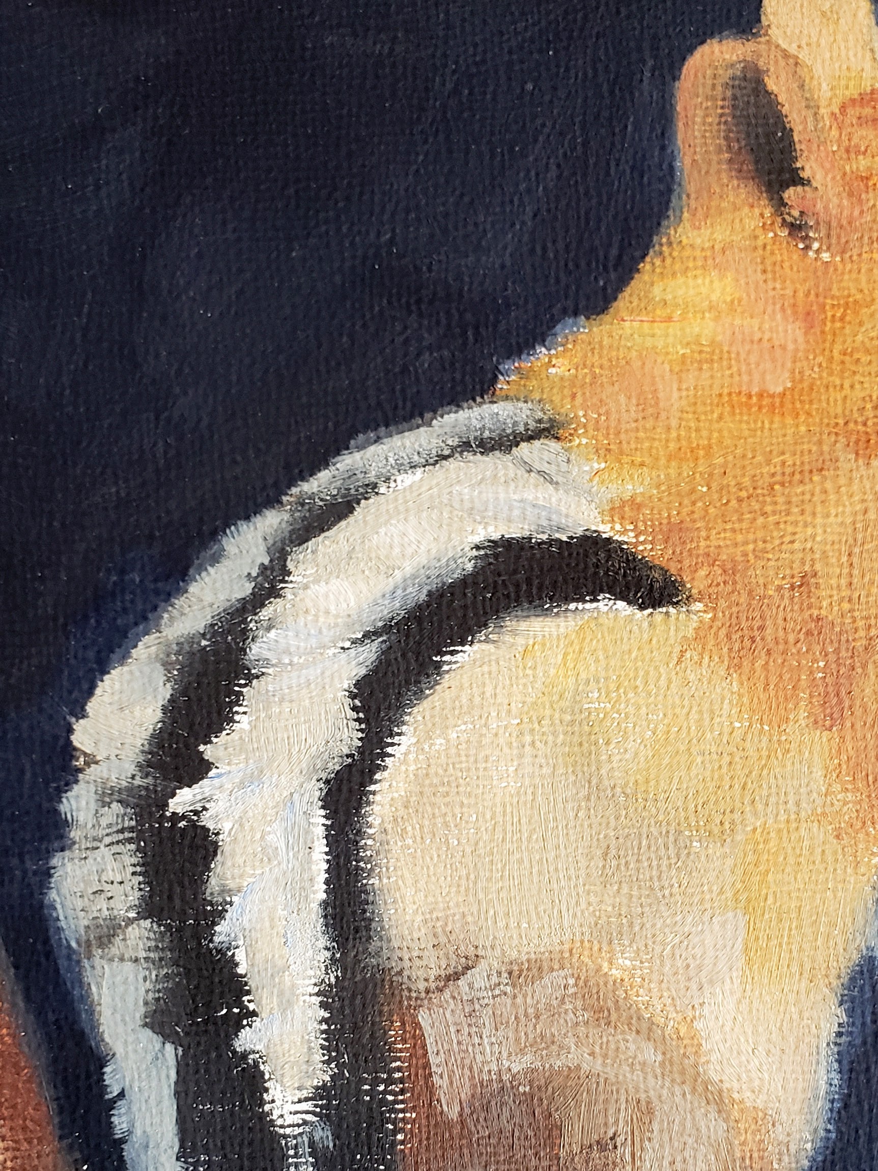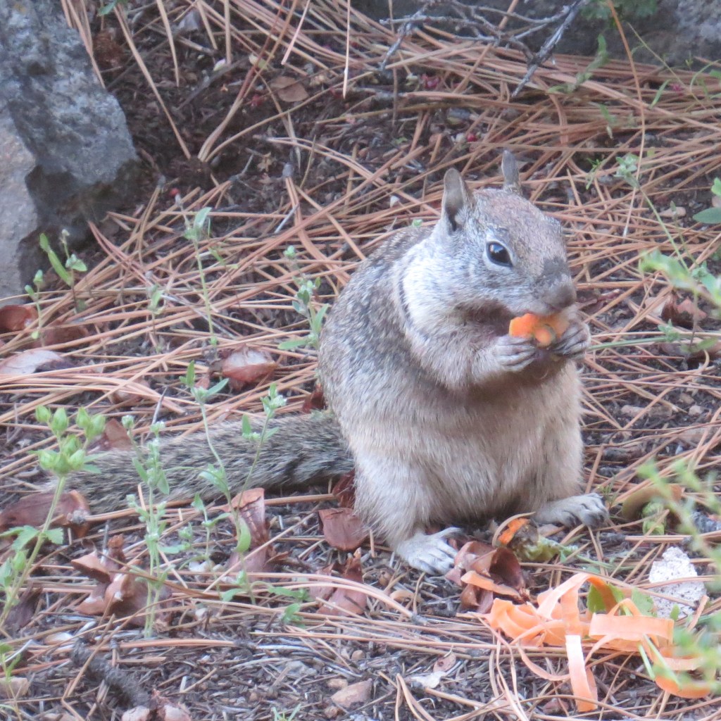 Chip is a Golden Mantle Squirrel that I feed peanuts. It has been around for two years. I enjoy its company and love sketching it. There is a constant battle with the groundies, (California Ground Squirrels) and Chip as to how the peanuts are divided up. The groundies also enjoy cuttings from vegetables which aren’t to Chips tasting. I call Chip over after scattering peanuts to the groundies, for his own supply. I painted both kinds of squirrels on 8x10in. panels and brought them to High Camp Home this week. Happy to say I met the customer who walked in and bought Chip while I was there, and then decided to purchase Dale too!