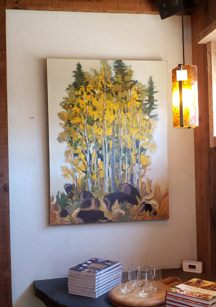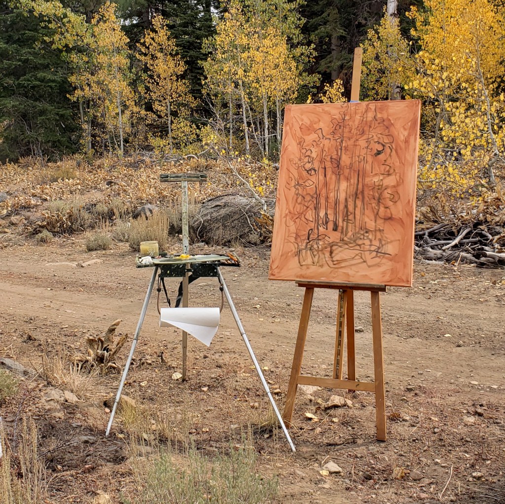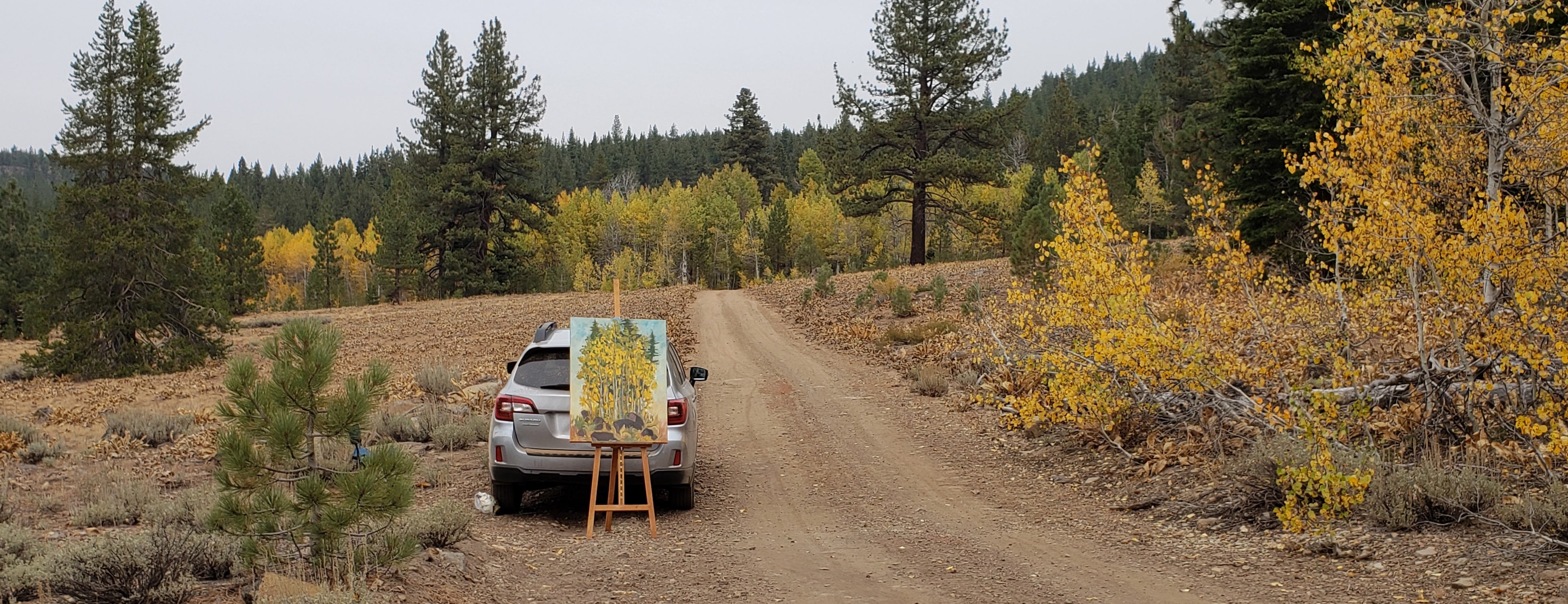 Hours of Sunlight painted on location in a Truckee meadow during October last year. I like seeing in the photos below how close I can come in color of the sage, aspen leaves and mule ears by guessing first what it might be on my brush.