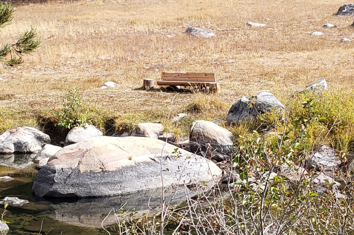 This bench was specially hand built and placed to view the Truckee river and a special rock that a family enjoys.A perfect place to enjoy the river. The Truckee was very low this last fall from the drought.