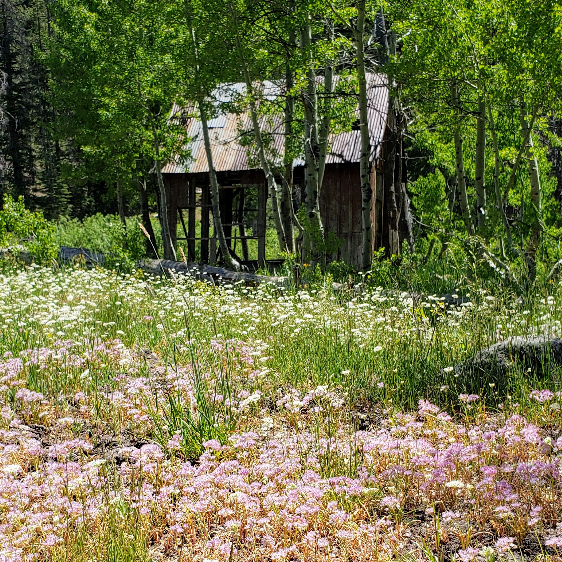 The beginning of summer in Truckee and the Brockway Summit shack is still standing. Surrounded by beautiful Sierra Onions and spreads of Yampahs the aspens area now bright green.