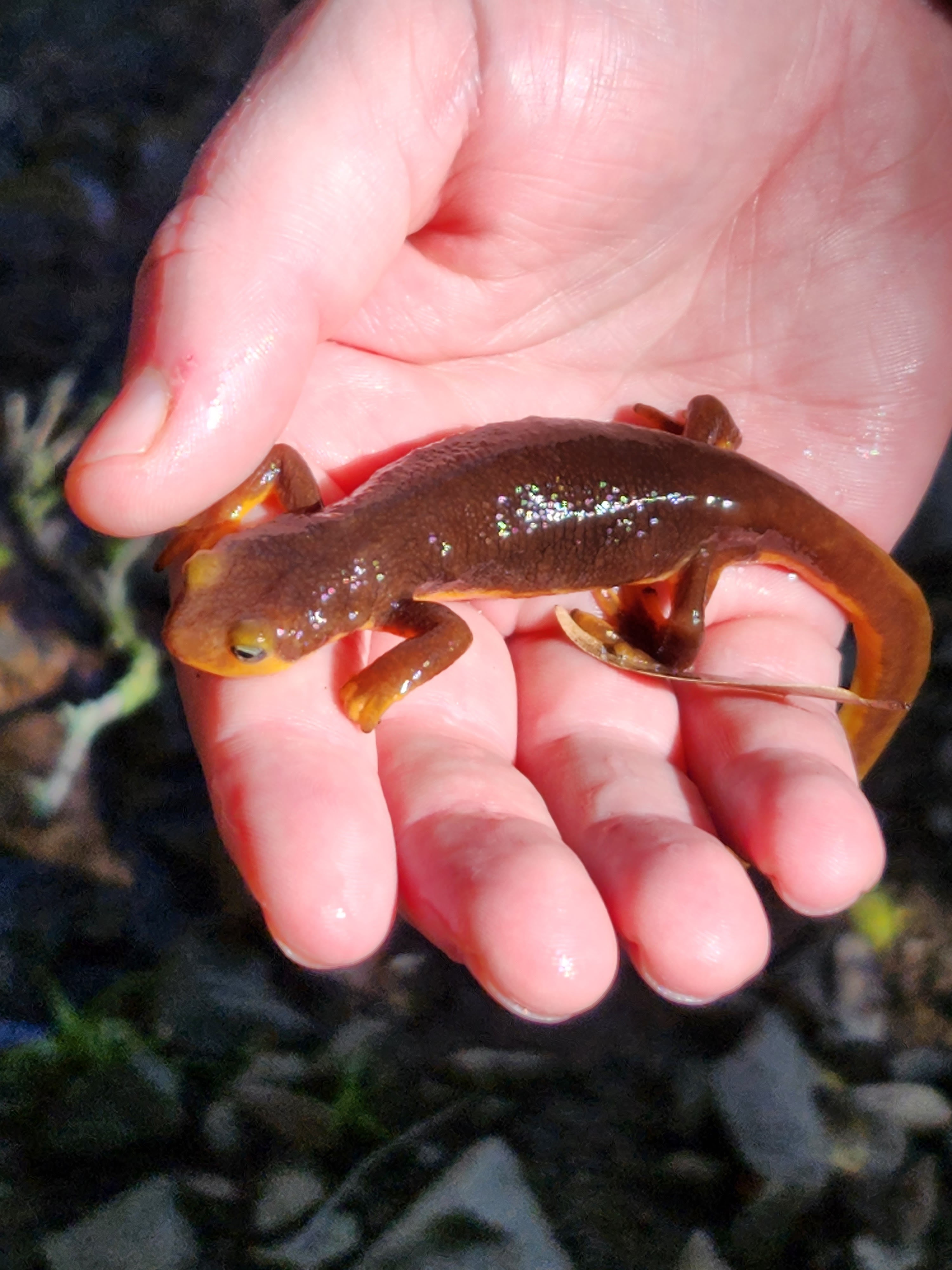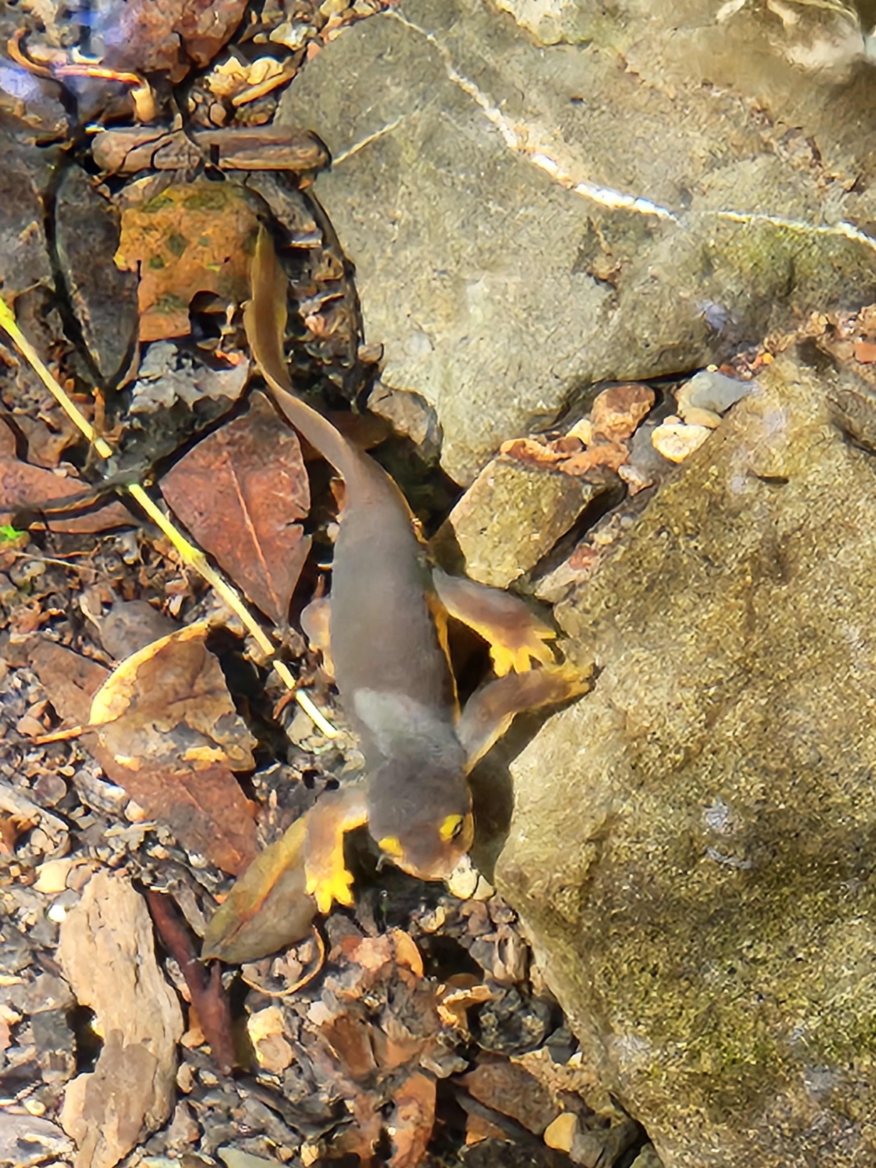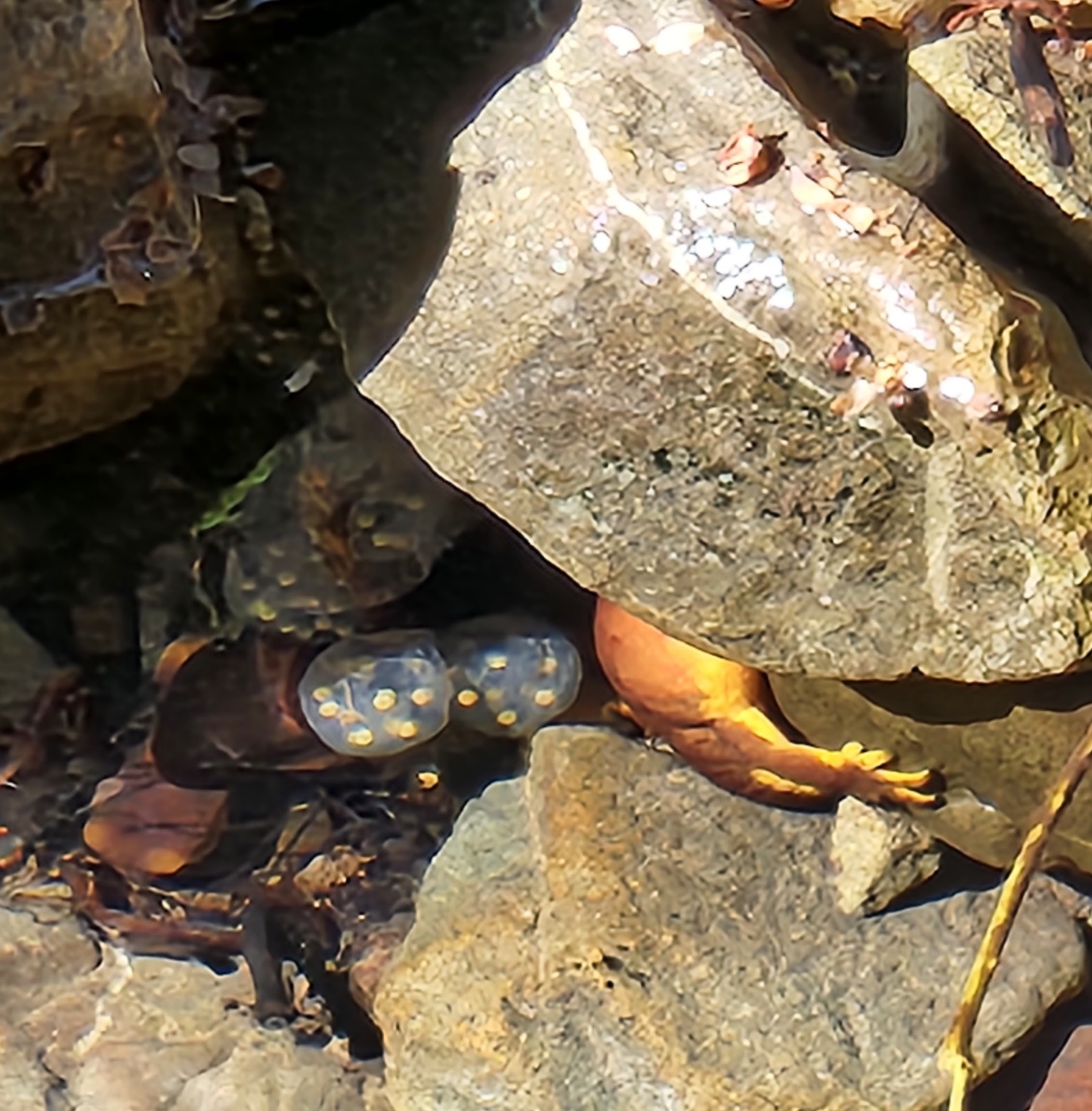 Newts were looking for mates along the creek in Blackstone canyon. The photo below shows a female newt laying eggs. The female trys to protect her eggs as other newts and waterlife will eat them.